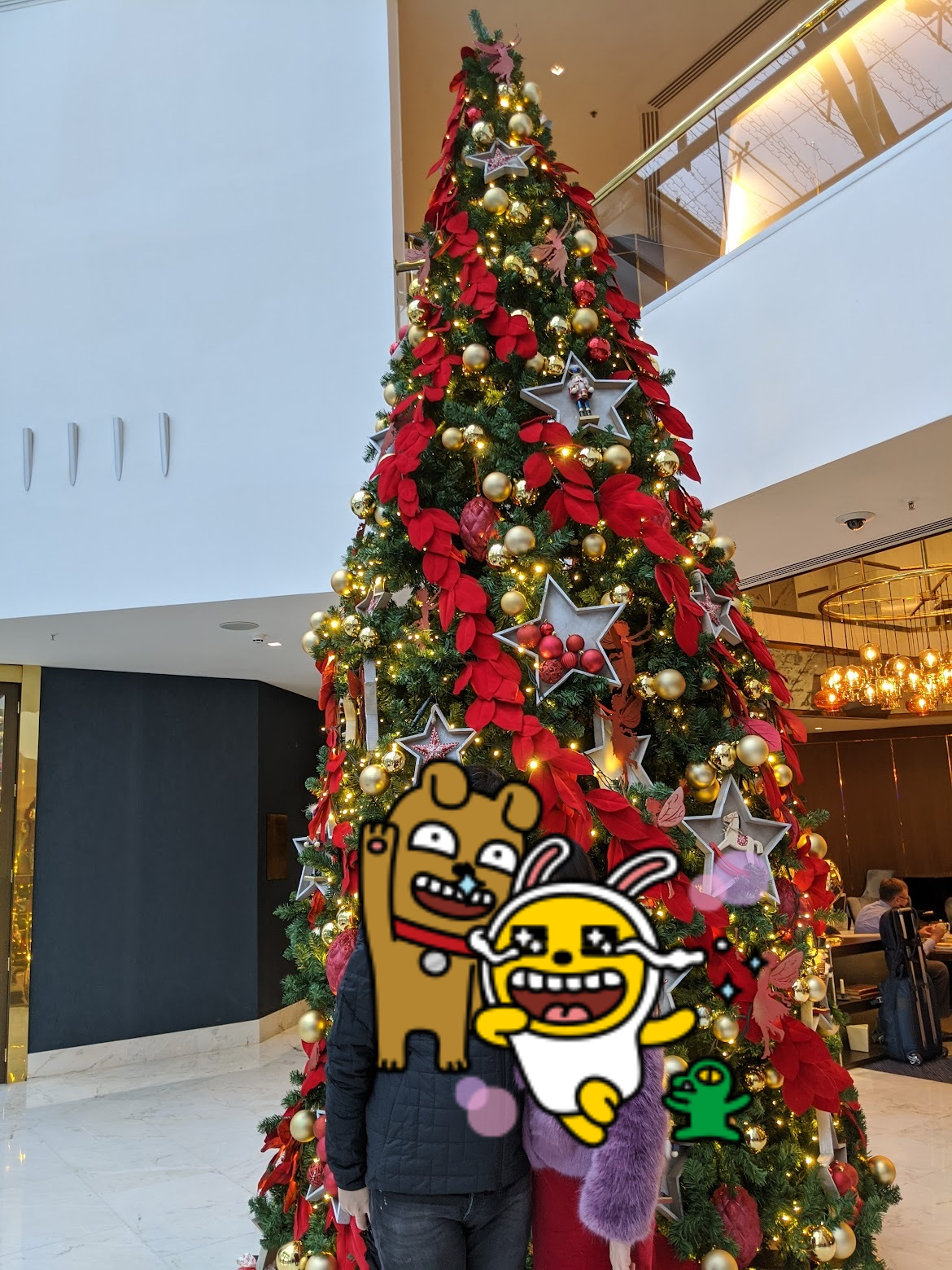 그래도 아이를 동반한 가족이시라면 저희처럼 크리스마스 시즌에 가셔서 귀여운 사진을 남기는 것도 좋으실 것 같네요. 커다란 트리도 있고 앉아서 사진도 찍을 수 있는 대형 썰매까지 있답니다. 저희가 열심히 셀카를 찍고 있는데, 직원 분이 오셔서 친절하게 사진을 찍어주셨어요. 숙박을 한 것도 아니지만 이런 세심한 서비스를 받을 수 있다는 것이 호텔 식당의 매력인 것 같습니다. 극강의 미식을 원하시는 분이라면 강력하게 추천드리지는 않지만 분위기를 즐기고 싶은 분들은 한번 쯤 고려해 보셔도 좋을 것 같아요. 이 주변 호텔 식당들 중에서는 여기가 가장 가격대도 괜찮고 평도 훌륭한 편입니다.