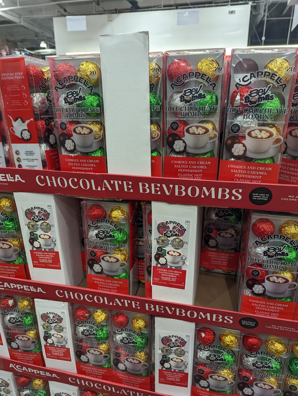 동그란 초콜렛 공 안에 마시멜로우가 들어간 초콜렛 밤도 있네요. 따뜻하게 데운 우유에 녹여 드시면 됩니다.