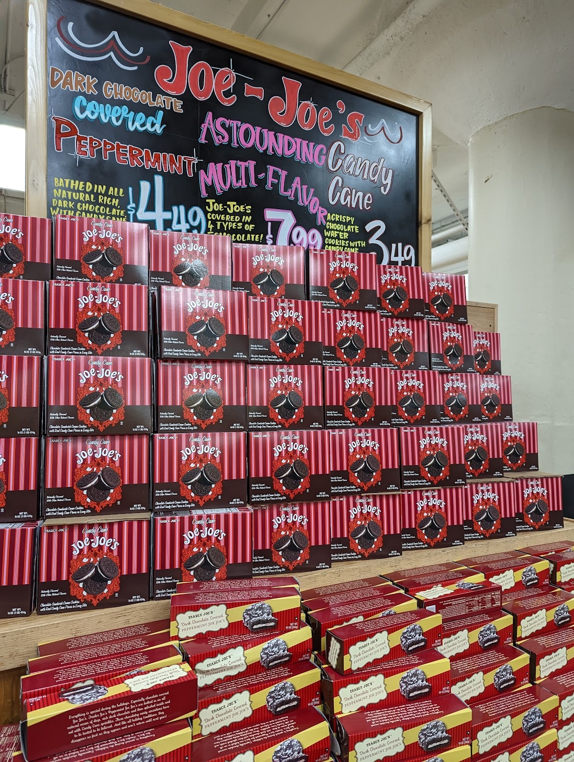 대망의 트레이더조스입니다. 캘리포니아에서 특히 인기있는 슈퍼에요. 가격도 저렴하고 오가닉 제품이나 키토 제품, 비건 제품 등이 다양하게 구비되어 있어 건강에 관심있는 캘리 사람들 구미에 딱 맞는 가게입니다. 체인이지만 정감있는 인테리어와 친절한 직원들도 한몫 하는 것 같아요. 계절에 맞춰 신제품이 계속 출시되고 언제 가도 사람이 북적입니다. 인기 제품들은 매진도 자주 되는 편이라 맛있어 보이면 그냥 사야해요. 크리스마스에는 페퍼민트 조조스 쿠키(오레오 유사제품)와 초콜렛을 입힌 버전도 출시되었네요.