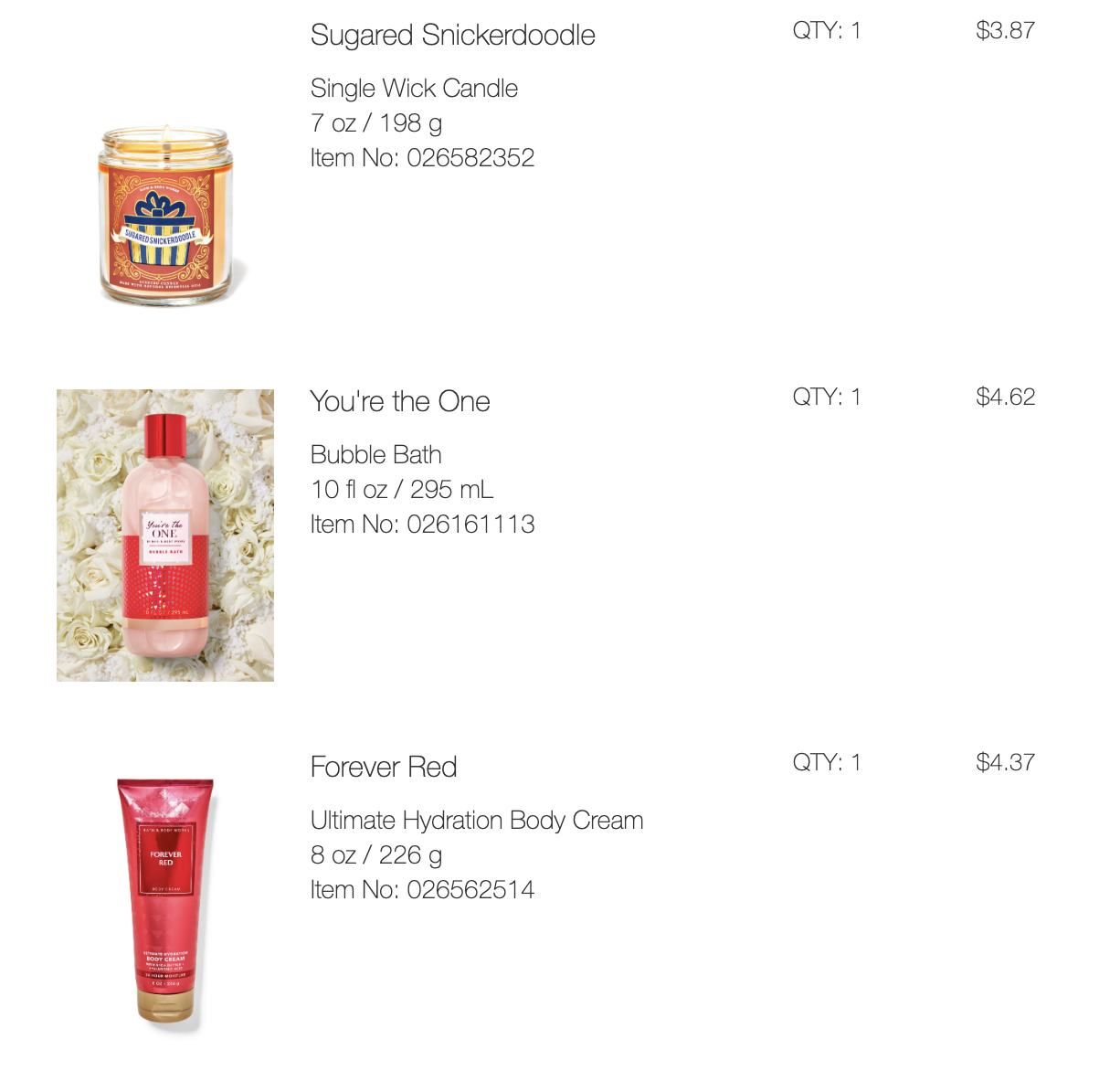 세금 미포함 가격정보 공유드려요. 인투더 나이트 바디크림은 매장에서 구매해서 픽업오더 정보에는 빠져있어요. 이렇게 다 해서 세금 포함 약 42달러 정도 나왔네요. 배바웍은 항상 프로모션이 있어서 정가로 살 일은 없지만 정가로 치면 바디크림 세개 가격에 바디크림부터 스크럽, 버블배쓰, 캔들 및 핸드워시와 손세정제까지 세트로 다 샀다고 생각하면 꽤 잘 산것 같기도 해요. 여긴 장사를 참 잘하는 것 같습니다.