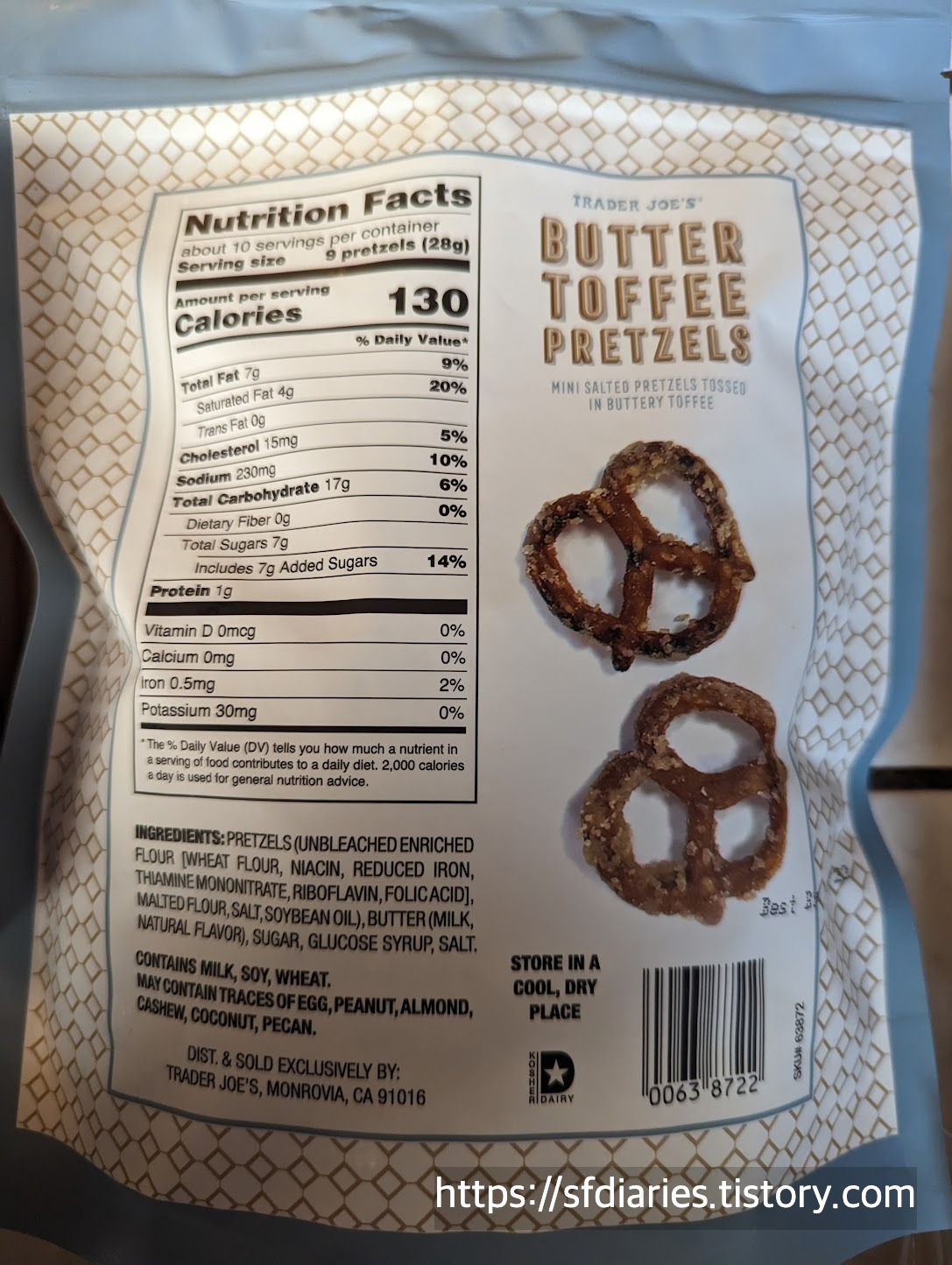 이 이름도 긴 다크 초콜렛 아몬드 버터 프레첼 너겟(Dark chocolate almond butter filled pretzel nuggets)은 2022년 초에 나온 따끈따끈한 신상인데요, 너무 맛있지만 칼로리가 높으니 사지 마세요 라는 간증글이 보이는군요. 이건 뭐 맛없없 조합이죠.