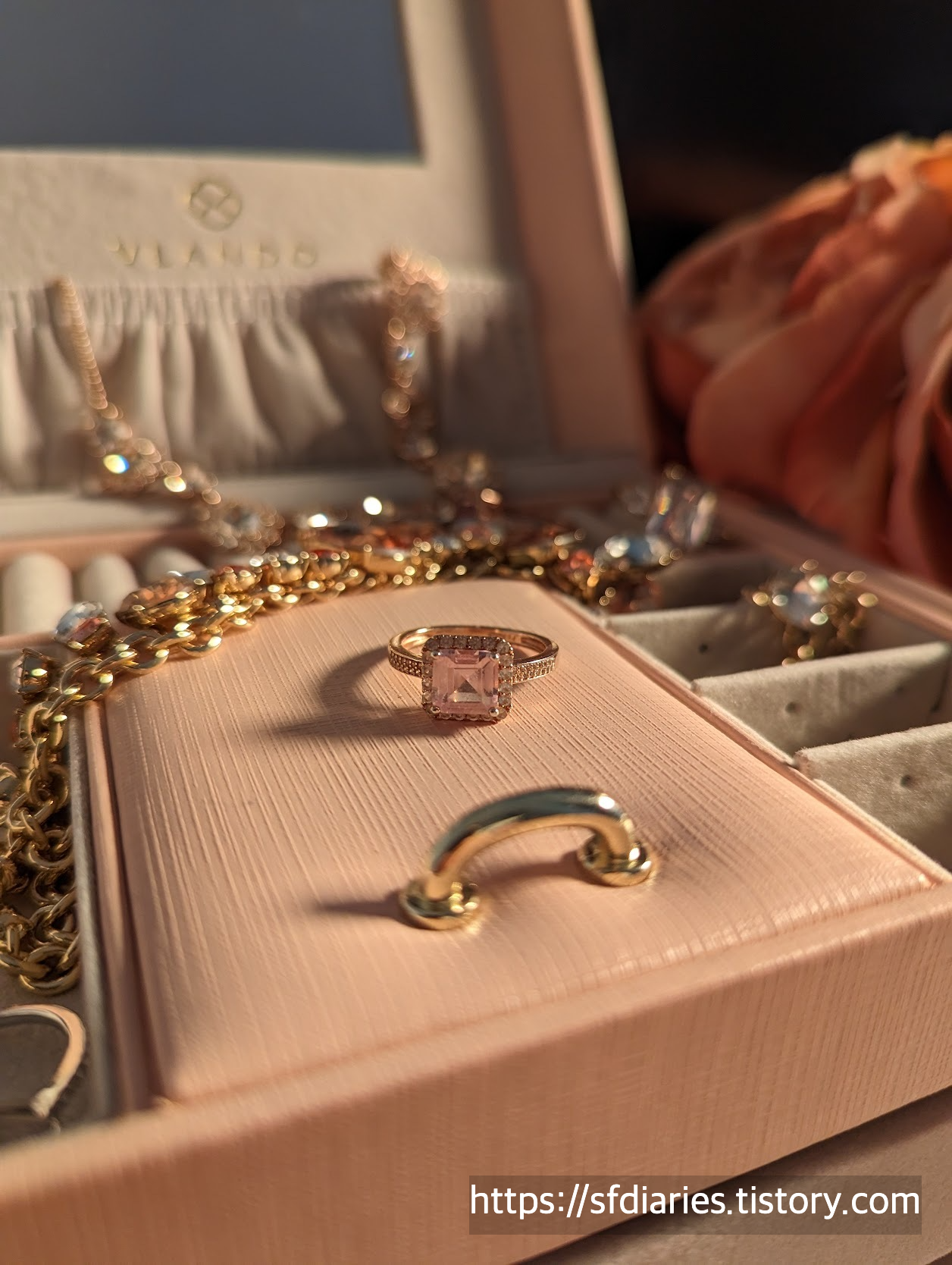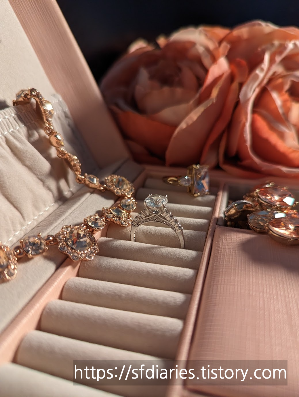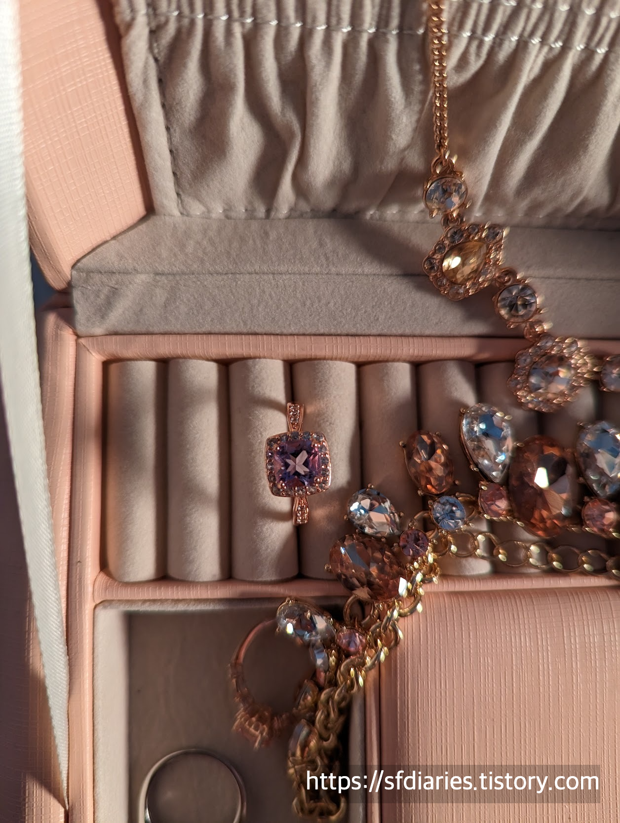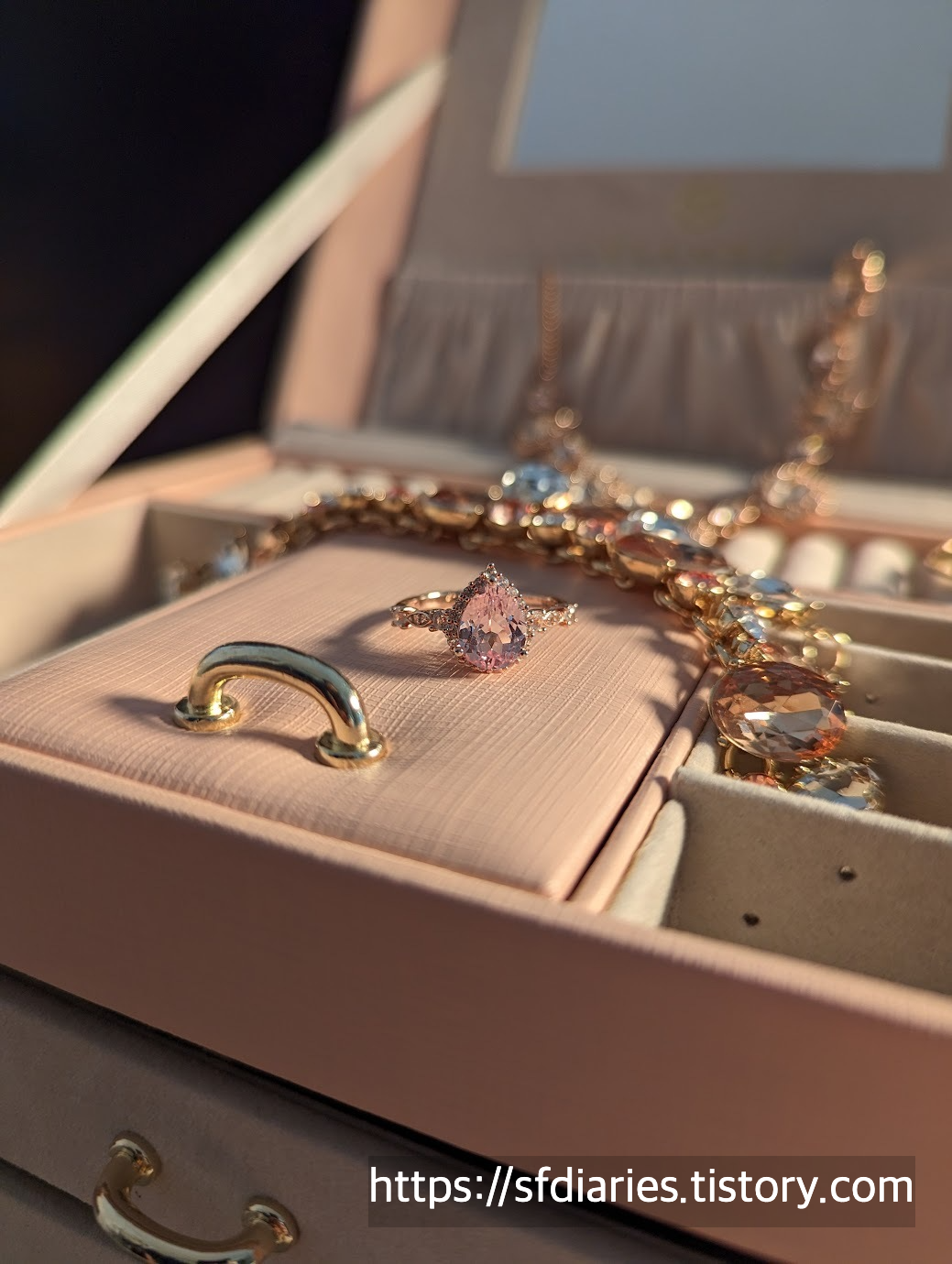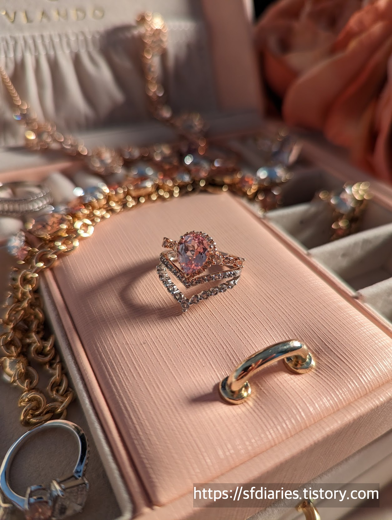 짜잔, 핑크 샴페인 사파이어링과 매치하면 이런 모습이랍니다. 로즈골드와 실버인데도 너무 잘 어울려서 특별한 날에 기분내기 좋아요.