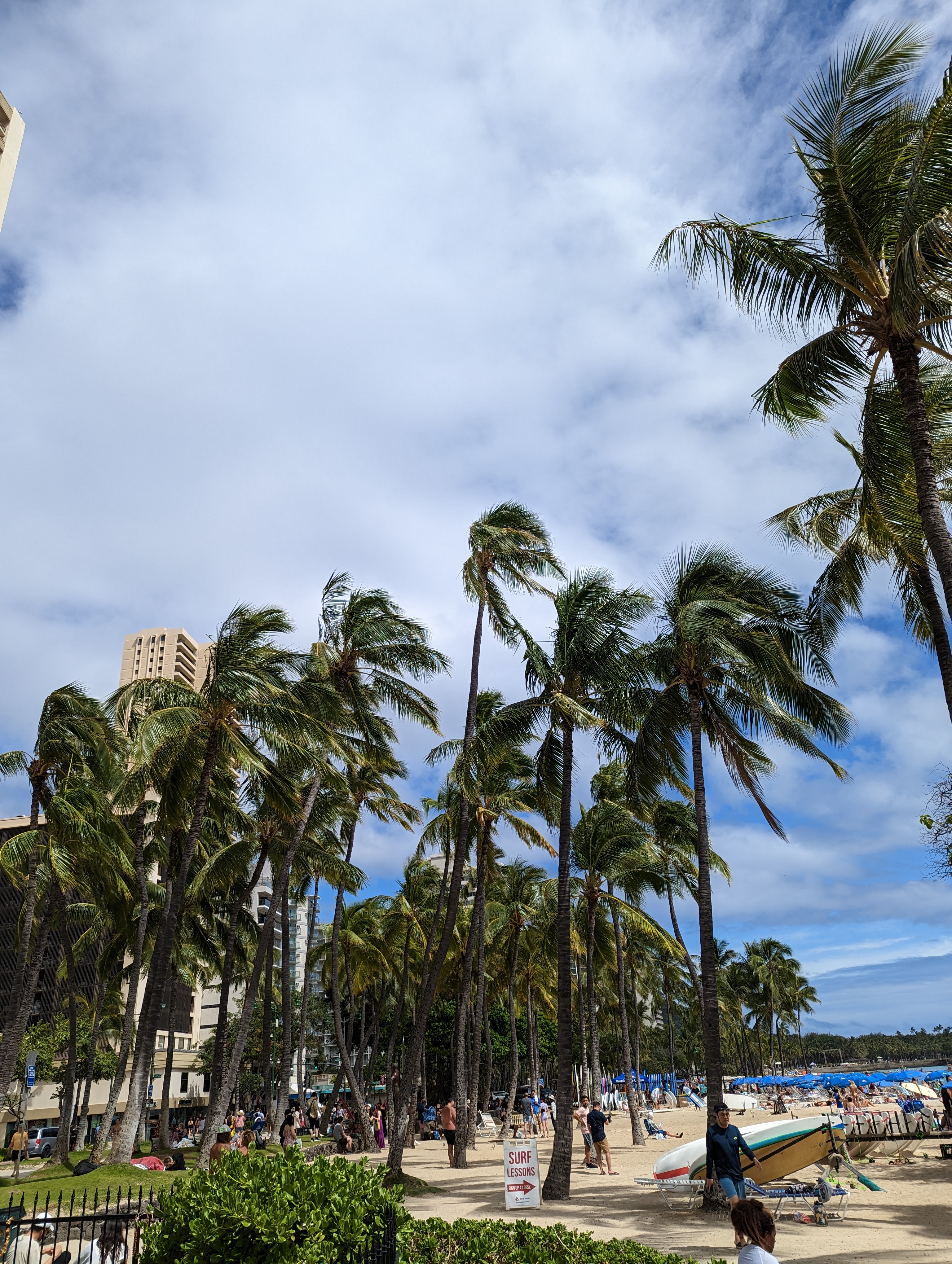 선크림도 안바르고 호다닥 구경나온 와이키키 비치의 모습입니다. 이날 날씨가 엄청 좋아서 보기만 해도 가슴이 설레더군요. 하와이는 전반적으로 나이가 있는 노부부 여행객도 많고 가족단위도 많아서 사람은 많아도 안전한 분위기였어요.