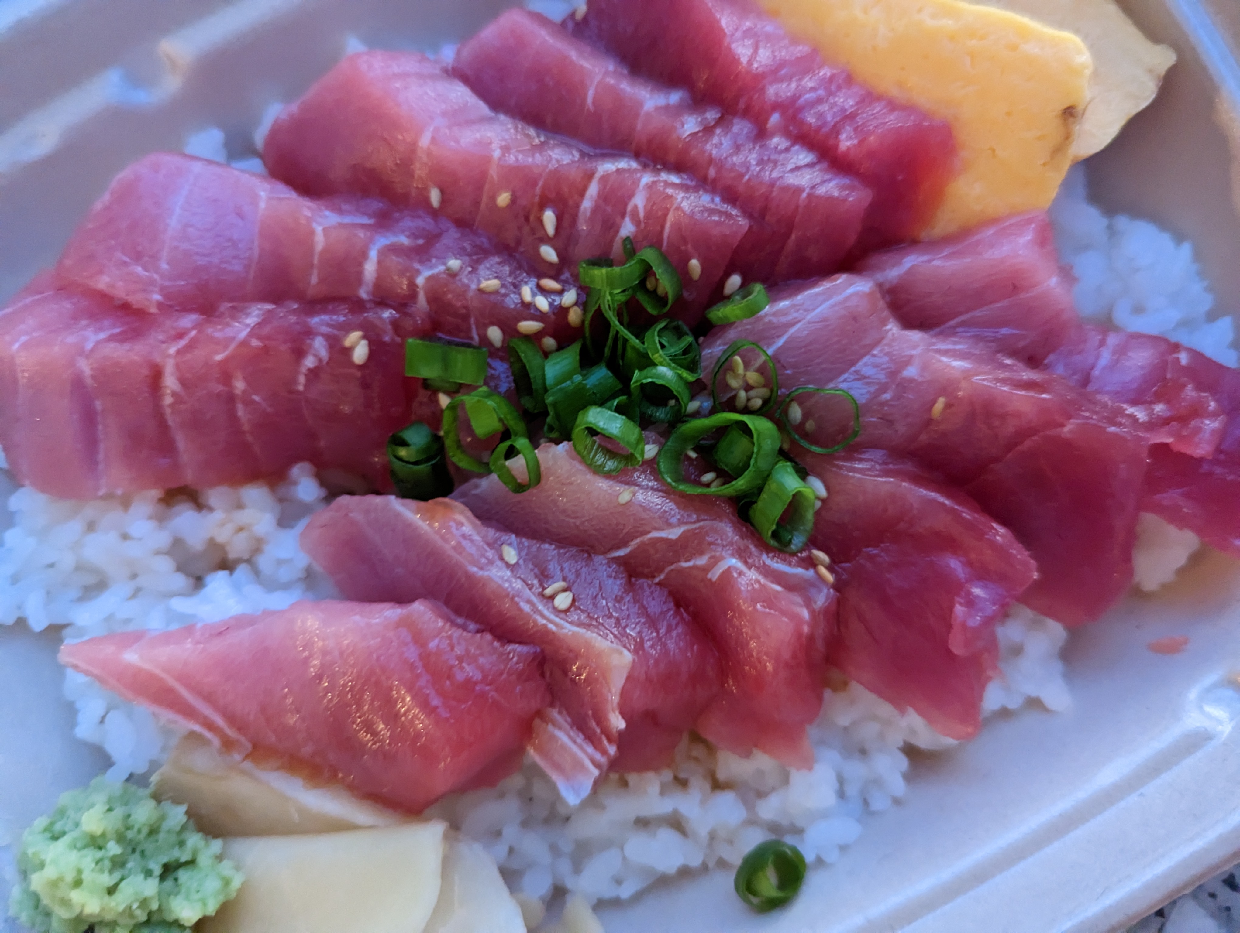생선이 굉장히 신선하고 식감도 훌륭해서 돈이 아깝다는 생각은 들지 않았고요, 어차피 와이키키 식당 물가를 고려하면 이해가 가는 가격이에요. 자리는 없고 테이크아웃만 가능하다는 점 기억해주시고요, 와이키키 근처에서 숙박하신다면, 참치를 좋아하신다면 추천입니다. 점심영업은 안하고 오후 5시 정도에 느긋하게 오픈하고요, 줄이 길지만 어차피 다 테이크아웃이라 금새 줄어듭니다. 저희는 평일 저녁에 10분 정도 웨이팅해서 먹었어요.