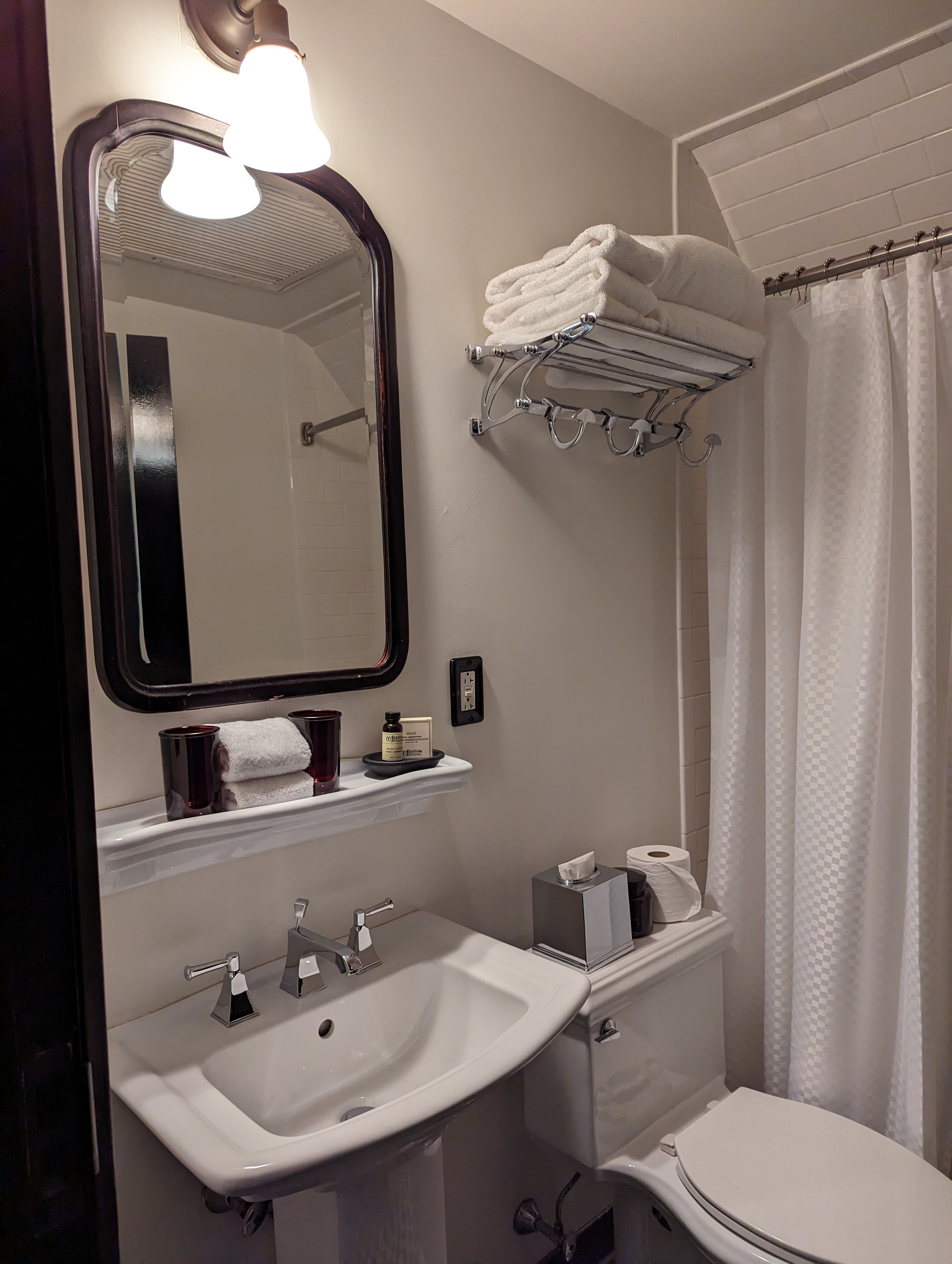 화장실은 보시다시피 매우 작습니다만 나름 모던하게 업데이트가 된 상태여서 불편함은 없었고요, 좁디좁은 맨하탄에서 욕조가 있다는 것 자체로도 감사한 일이죠. 더운 물 잘 나오고 수압도 괜찮았어요. 어메니티는 CO Bigelow 제품입니다.