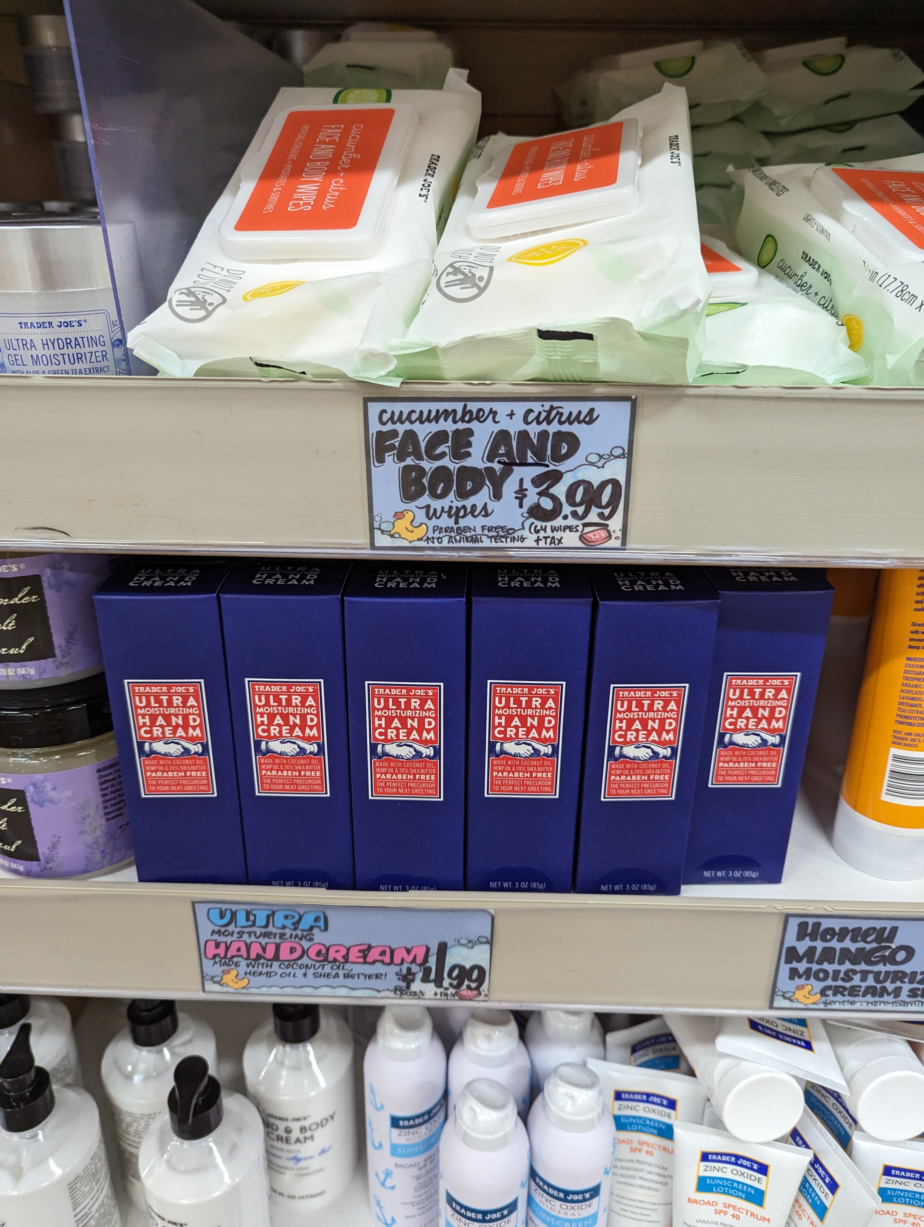안녕하세요 오들입니다. 트레이더조스는 식료품 뿐만 아니라 꽤 괜찮은 스킨케어 및 바디제품도 파는데요, 성분도 클린한 편이고 가격도 괜찮아서 현지인들에게도 굉장히 인기입니다. 특히 한국에는 정식 수입되고 있지 않기 때문에 기념품으로도 정말 좋으실 것 같아요.