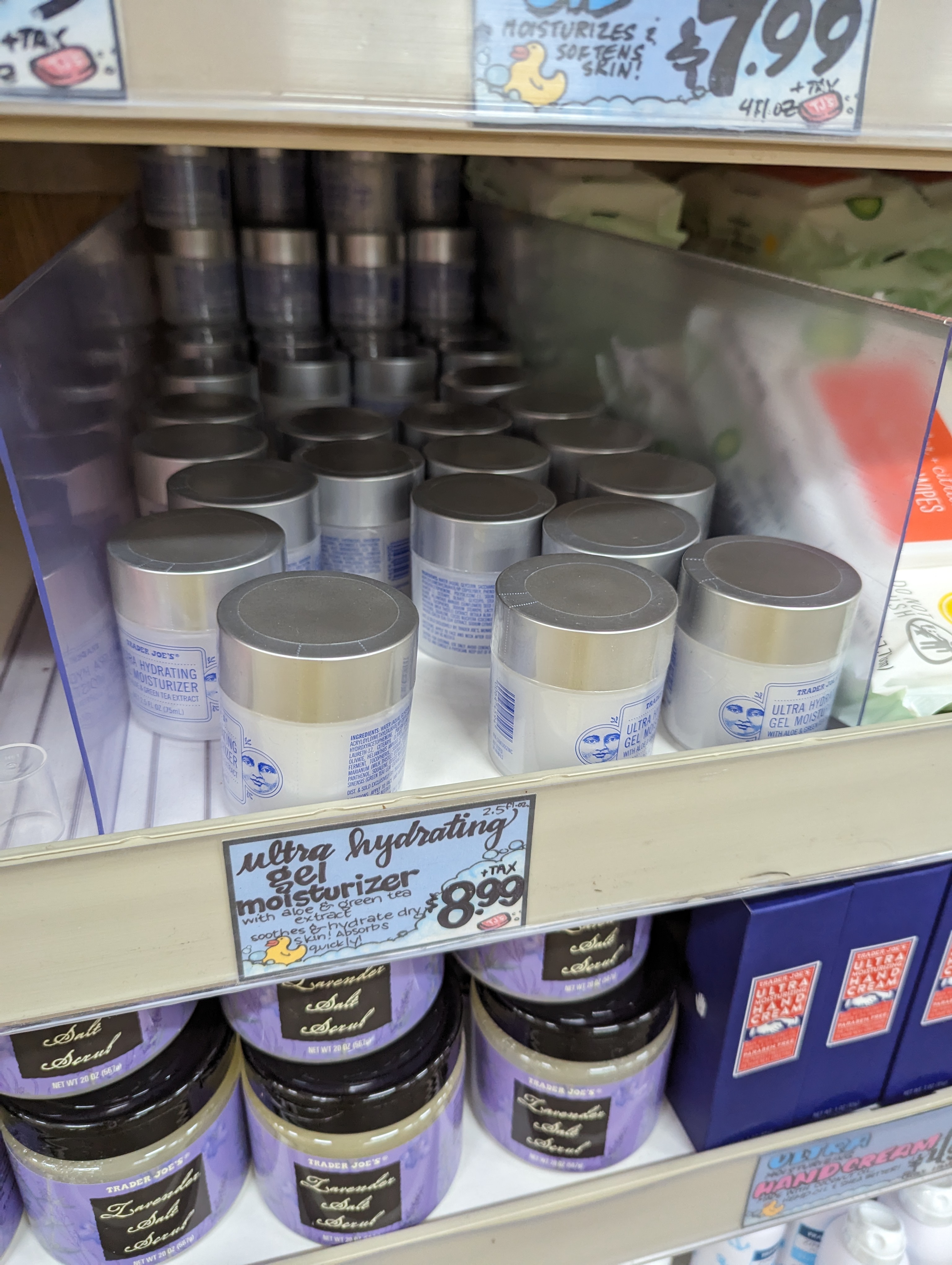 수분크림(ultra hydrating gel moisturizer)은 9달러에요. 우리나라에 좋은 수분크림이 워낙 많긴 하지만 미국 제품이 궁금하시다면 추천드릴게요. 이 제품도 트레이더조스 스킨케어 대표상품이에요.