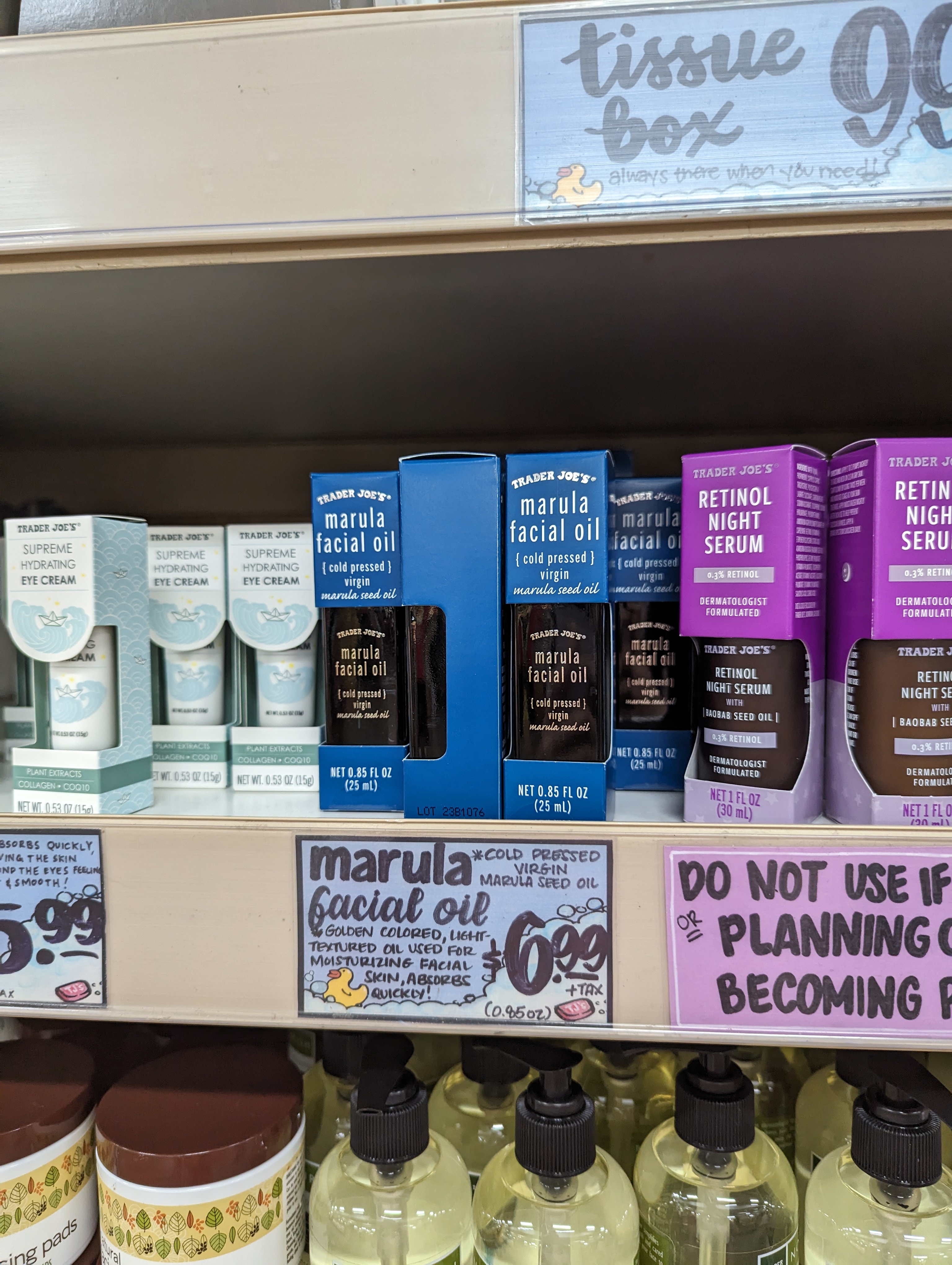 콜드프레스 마룰라 페이셜 오일은 7달러입니다. 드렁크 엘리펀트 Drunk Elephant의 마룰라 오일이 68달러임을 생각하면 정말 혜자로운 가격이네요. 슈프림 하이드레이팅 아이크림은 6달러이고 0.3% 레티놀 나이트세럼는 10달러에요.